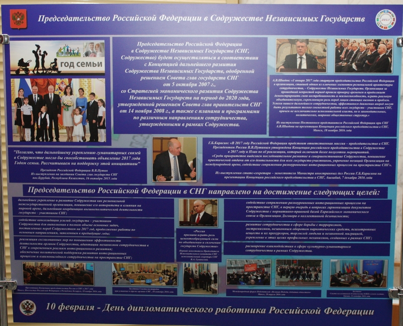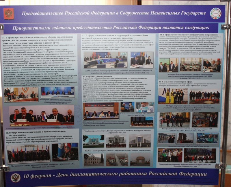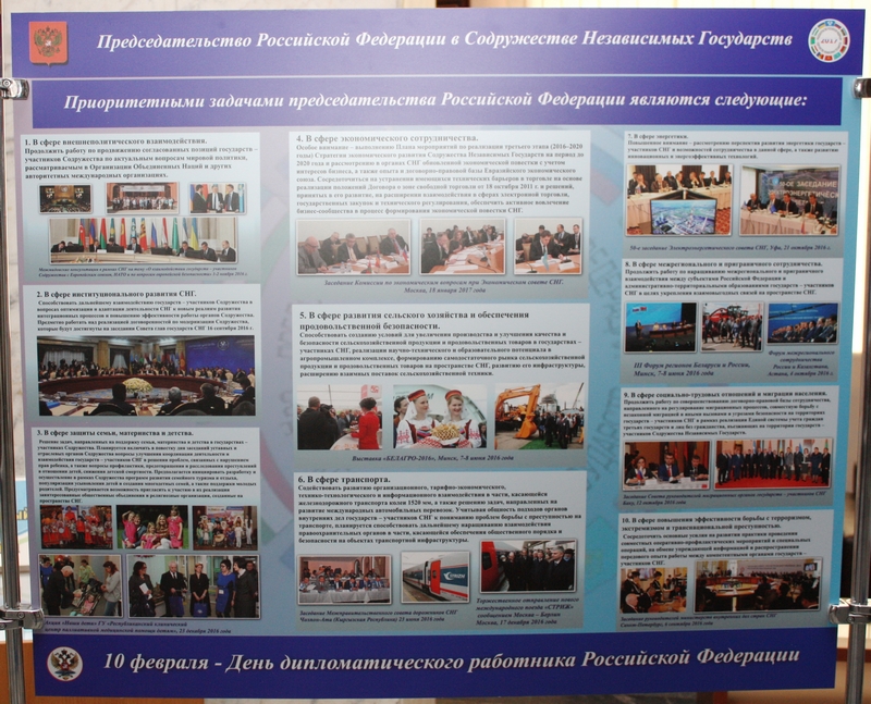 В штаб-квартире СНГ в Минске развернута фотовыставка, посвященная Дню дипломатического работника Российской Федерации