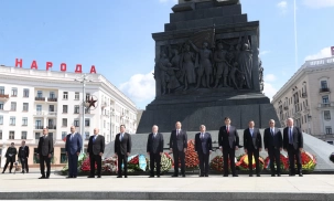 Перед заседанием Совета глав правительств СНГ 28 мая в Минске главы делегаций-участников заседания возложили венки к Монументу Победы
