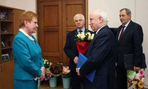С.Лебедев вручил Грамоту Исполнительного комитета СНГ Председателю ЦИК Беларуси Л.Ермошиной
