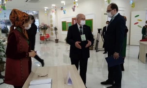 Глава Миссии наблюдателей от СНГ Леонид Анфимов принял участие в наблюдении за выборами на участке, где голосовал Президент Туркменистана